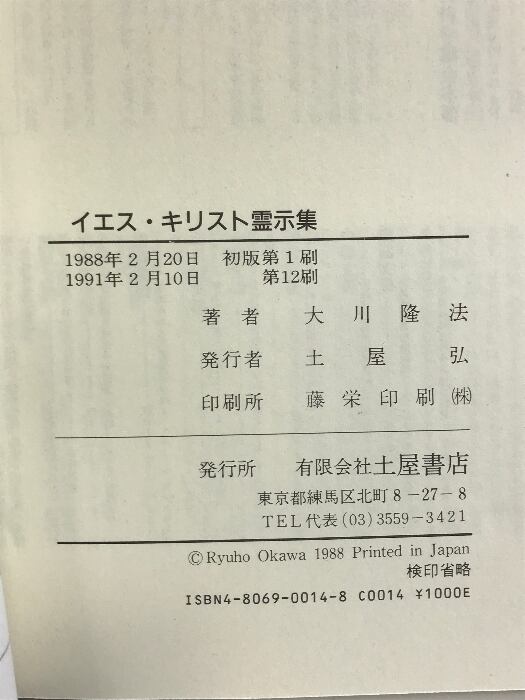 タイトル:イエス・キリスト霊示集: 愛の復活と新時代の精神を語る (心霊ブックス) 土屋書店 大川 隆法