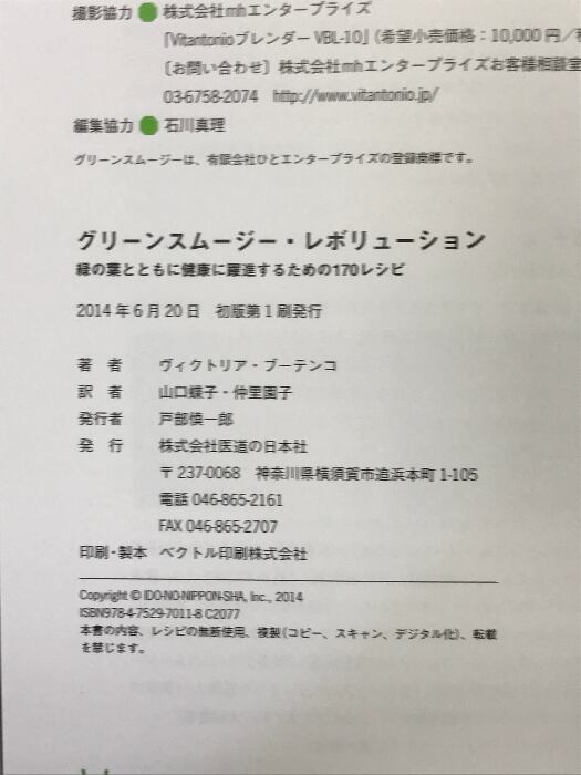 タイトル:グリーンスムージー・レボリューション 緑の葉とともに健康に躍進するための170レシピ 医道の日本社 ヴィクトリア ブーテンコ