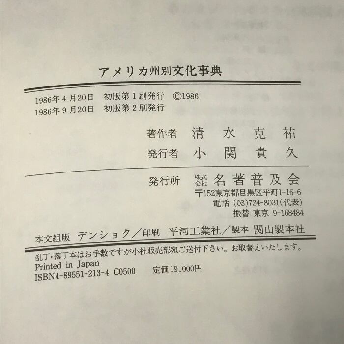 タイトル:アメリカ州別文化事典 名著普及会 清水 克祐