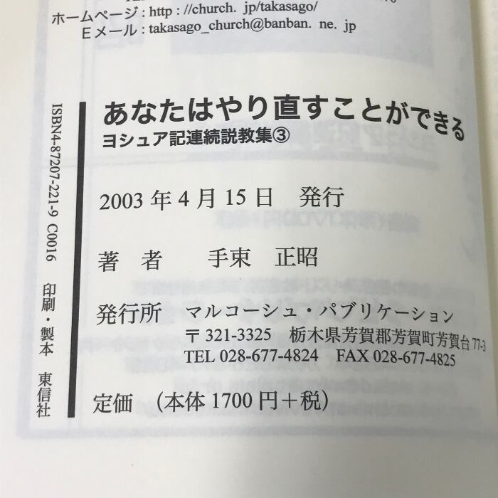 タイトル:あなたはやり直すことができる (ヨシュア記連続説教集) マルコーシュ・パブリケーション 手束正昭