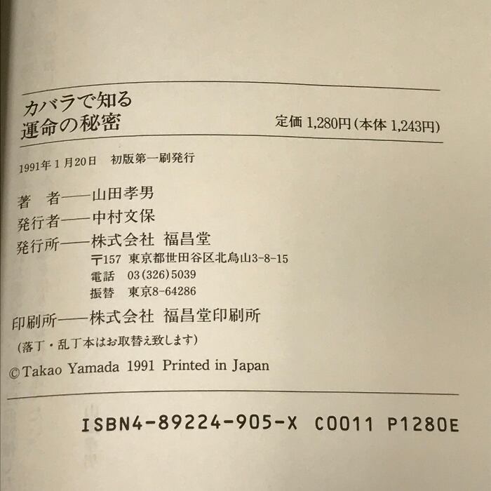 タイトル:カバラで知る運命の秘密 福昌堂 山田 孝男