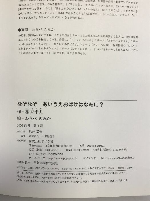 タイトル:なぞなぞあいうえおばけはなあに? ポプラ社 巻 左千夫