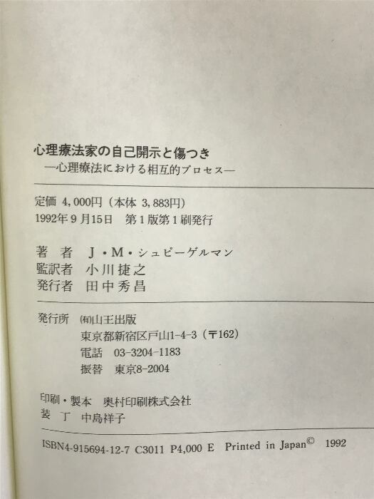 タイトル:心理療法家の自己開示と傷つき: 心理療法における相互的プロセス 山王出版 J.M.シュピーゲルマン