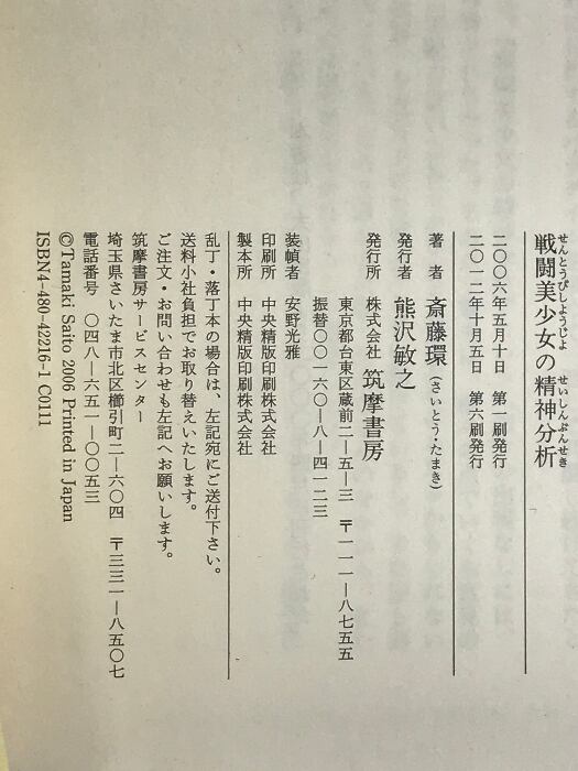 戦闘美少女の精神分析 (ちくま文庫 さ 29-1) 筑摩書房 斎藤 環