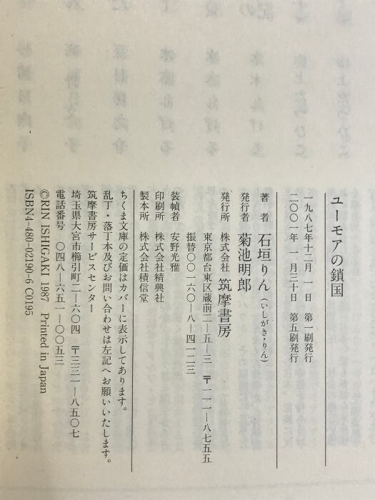 ユーモアの鎖国 (ちくま文庫 い 7-1) 筑摩書房 石垣 りん