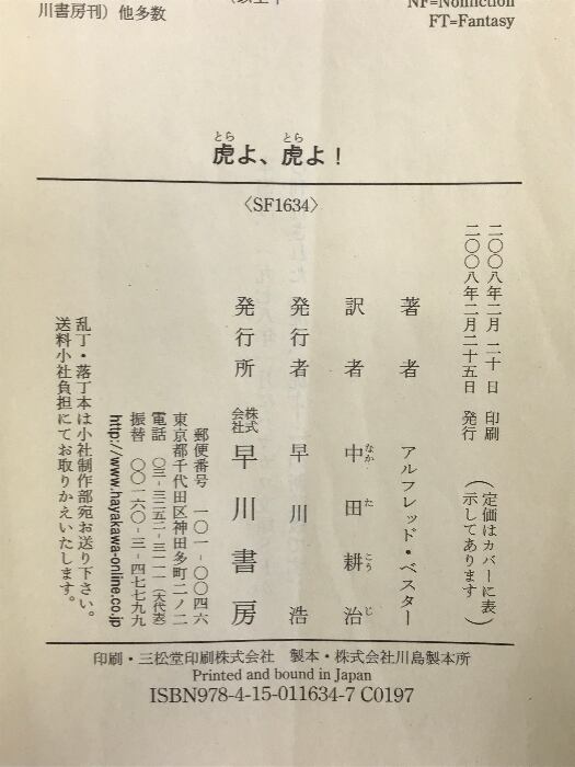 虎よ、虎よ! (ハヤカワ文庫 SF ヘ 1-2) 早川書房 アルフレッド・ベスター