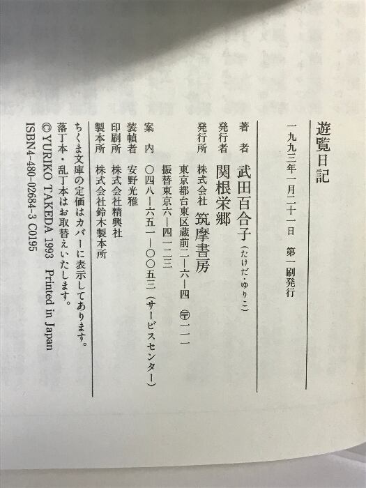遊覧日記 (ちくま文庫) 筑摩書房 武田 百合子