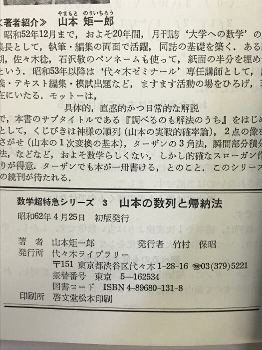 山本の数列と帰納法 代々木ライブラリー 山本 矩一郎