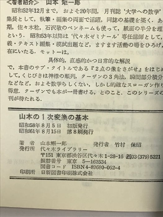 タイトル:山本の1次変換の基本―代々木ゼミ方式 2点の像をさがせ (数学超特急シリーズ) 代々木ライブラリー 山本矩一郎