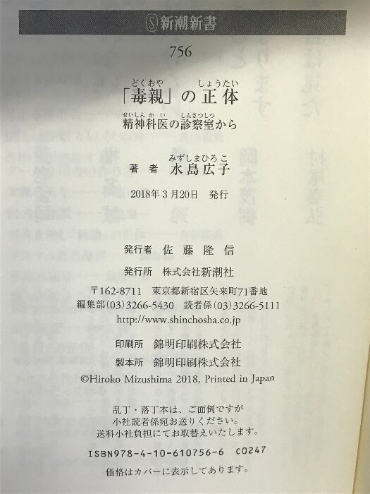 タイトル:「毒親」の正体 ――精神科医の診察室から ((新潮新書)) 新潮社 水島 広子