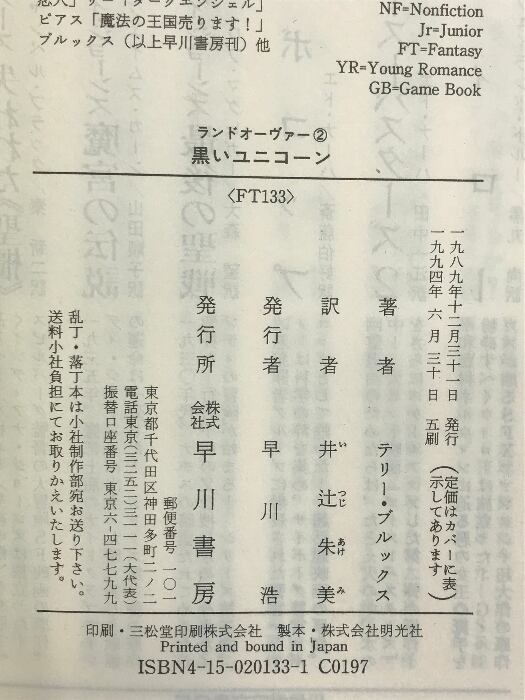 黒いユニコーン (ハヤカワ文庫FT―ランドオーヴァー 2) 早川書房 テリー・ブルックス