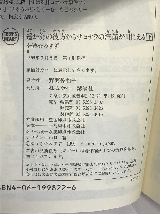 遥か海の彼方からサヨナラの汽笛が聞こえる 下 (講談社X文庫 ゆ 2-11 ティーンズハート) 講談社 ゆうき みすず