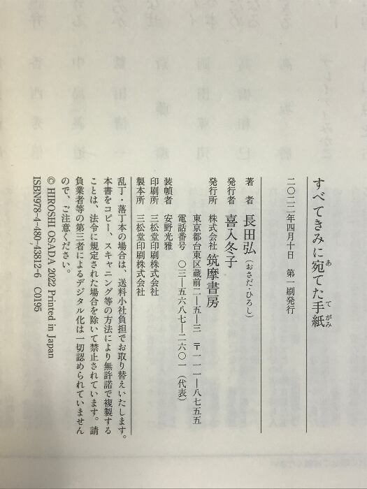 すべてきみに宛てた手紙 (ちくま文庫) 筑摩書房 長田 弘