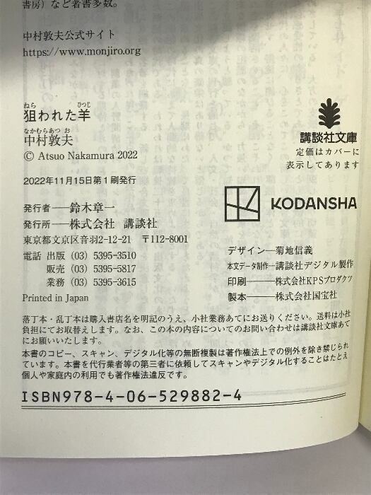 タイトル:狙われた羊 (講談社文庫) 講談社 中村 敦夫