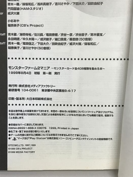 モンスターファーム2マニア: モンスターカード全408種類 (じゅげむBOOKS) KADOKAWA(メディアファクトリー) 塩田 信之
