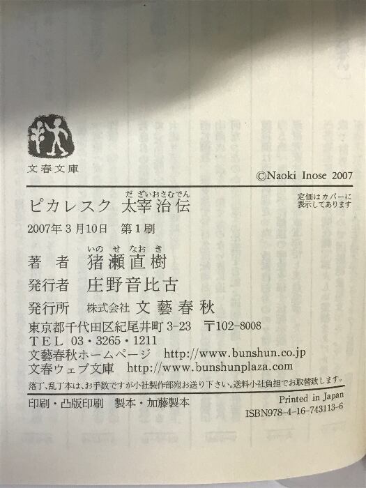 ピカレスク 太宰治伝 (文春文庫 い 17-13) 文藝春秋 猪瀬 直樹