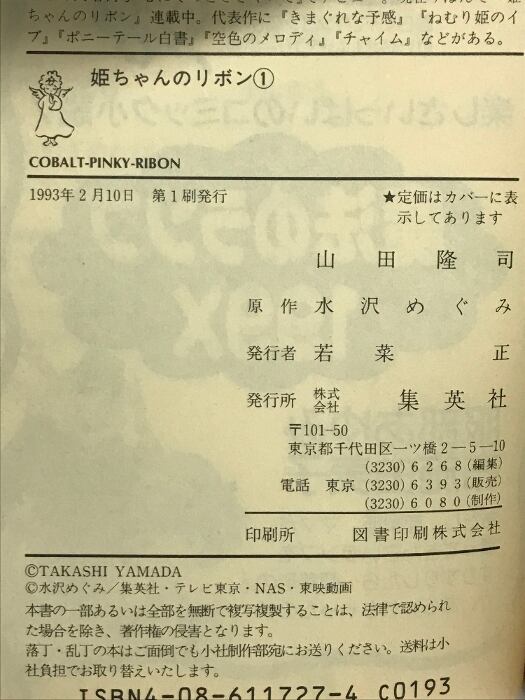 姫ちゃんのリボン 1 ロマンチック・ストーリー (ロマンチック・ストーリー/姫ちゃんのリボンシリーズ) (コバルト文庫) 集英社 山田 隆司