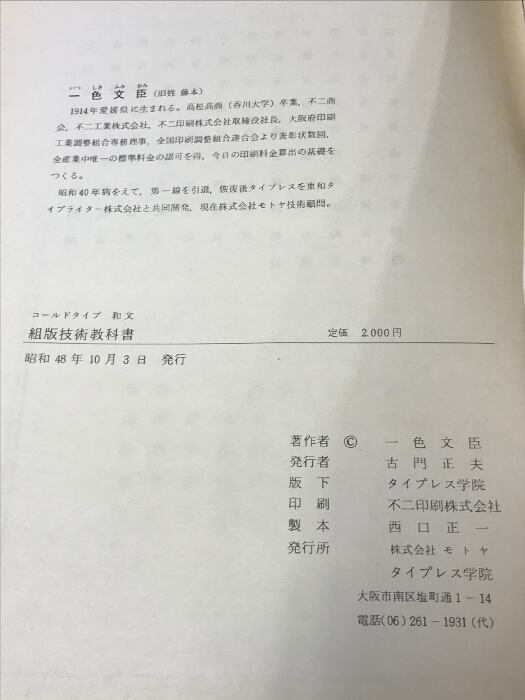 コールドタイプ 和文 組版技術教科書 タイプレス学院 一色文臣 タイプライター