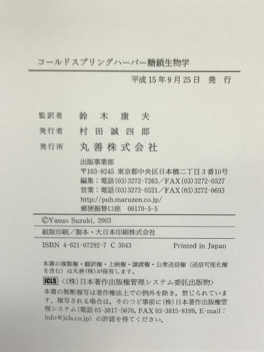 タイトル:コールドスプリングハーバー糖鎖生物学 丸善出版 Ajit Varki