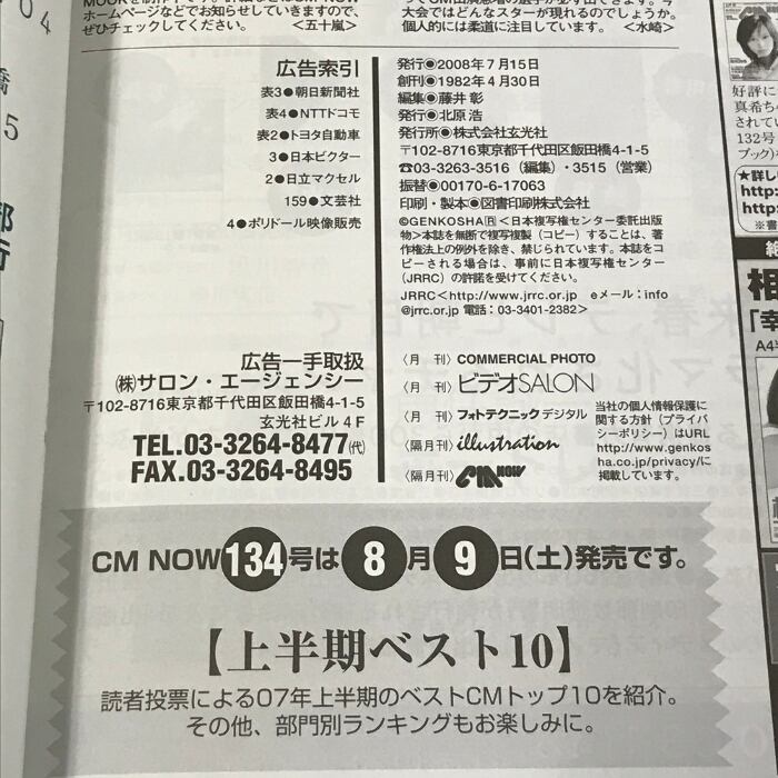 タイトル:シーエム・ナウ CM NOW 133 特集 成海璃子 綾瀬はるか 女性キャスターCM DVD付録 70分 玄光社 上戸彩 蒼井優 長澤まさみ 他