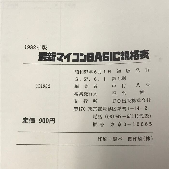 タイトル:最新 マイコンBASIC規格表 ’82 CQ出版社