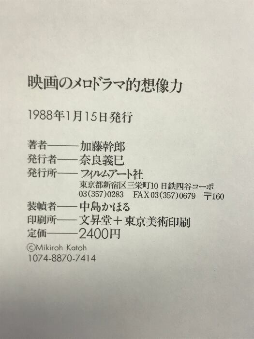 タイトル:映画のメロドラマ的想像力 フィルムアート社 加藤 幹郎