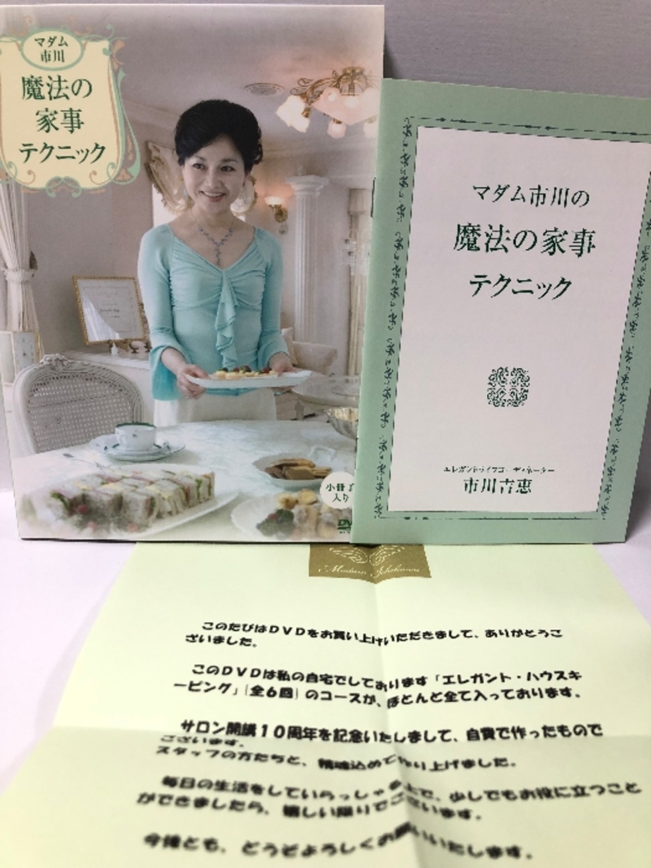 はじめまして。市川吉恵です。収納とハウスキーピング、おもてなし・・・という言葉から連想すると、まるで私はきっちり几帳面な達人主婦という印象になってしまうのかもしれません。でも実は、ビックリするほど大雑把。家のことをするのは大好きだけど、朝から晩まで家事をするなんていや、自分の好きなこともしたい!といった性格なのです。でも、そんな私だからこそ、面倒でない収納の工夫や、手軽なおもてなしのアイディアうぃ提案できるのではないかしらと思っています。完璧じゃなくても、十分素敵で、心が豊かになる日々の暮らしのあれこれを、私自身、ますます磨きをかけながら、どんなお宅にも応用できるアイディアを、見安様にご紹介していきたいと思います。(DVDより抜粋) このように語る、マダム市川が主宰する自宅サロンでの全レッスン(6回分)の中で押さえておきたい大事なポイントを、このDVD1枚(たっぷり119分)に凝縮!! 「お家をキレイにしたいわ!」と思っても、結局数日経つと、悲しいくらい元通り!? でも、マダム市川が提案するシステムをいったんお家の中につくってしまえば、お掃除の時間も短縮!! 一つ一つのアイ・・・