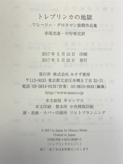 タイトル:トレブリンカの地獄――ワシーリー・グロスマン前期作品集 みすず書房 ワシーリー・グロスマン