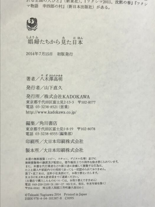 タイトル:娼婦たちから見た日本 KADOKAWA/角川書店 八木澤 高明