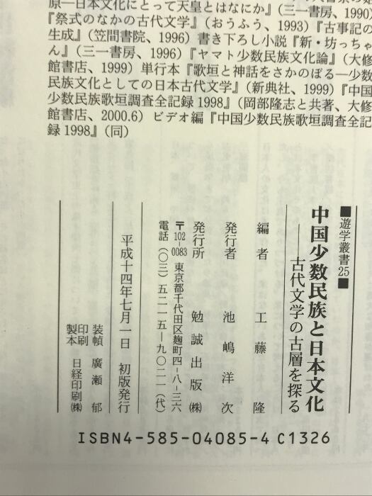 タイトル:中国少数民族と日本文化: 古代文学の古層を探る (遊学叢書 25) 勉誠社(勉誠出版) 工藤 隆