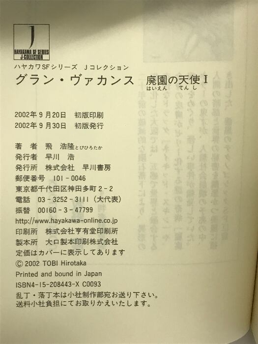 タイトル:グラン・ヴァカンス (ハヤカワSFシリーズ Jコレクション 廃園の天使 1) 早川書房 飛 浩隆