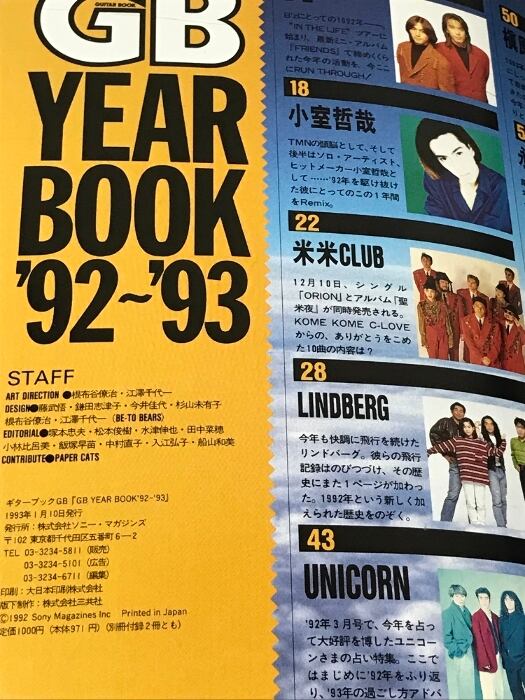 GBスペシャル年鑑 YEARBOOK ’92-’93 ソニー・マガジンズ B'z 小室哲哉 UNICORN 他