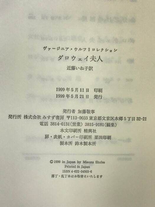 ダロウェイ夫人 (ヴァージニア・ウルフコレクション) みすず書房 ヴァージニア ウルフ