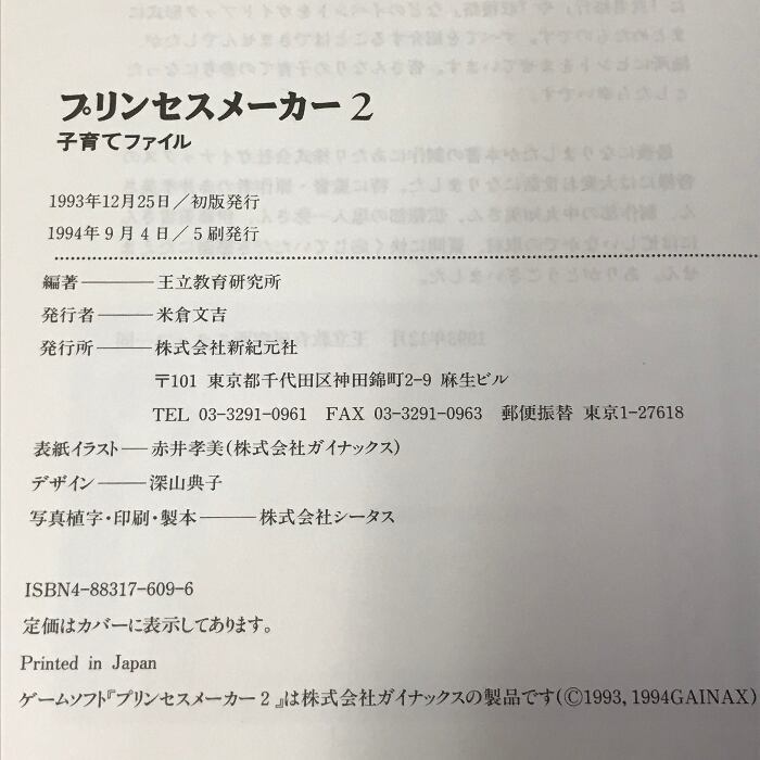 プリンセスメーカー2 子育てファイル 王立教育研究所 新紀元社