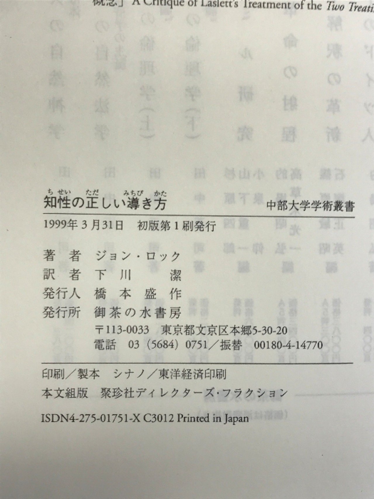 タイトル:知性の正しい導き方 (中部大学学術叢書) 御茶の水書房 ジョン ロック