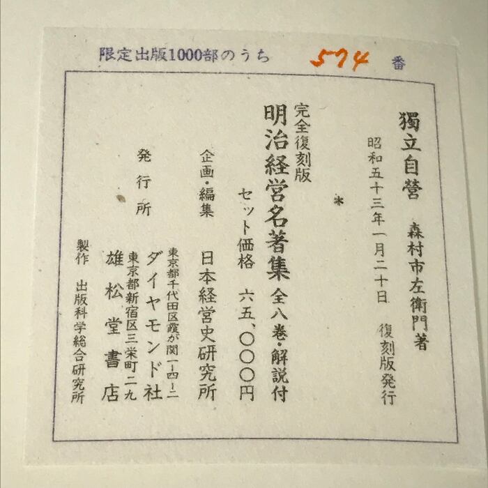 独立自営 森村 市左衛門 完全復刻版 明治経営名著集 獨立自営