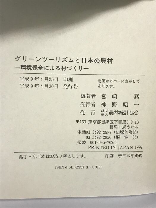 タイトル:グリーンツーリズムと日本の農村: 環境保全による村づくり 農林統計協会 宮崎 猛
