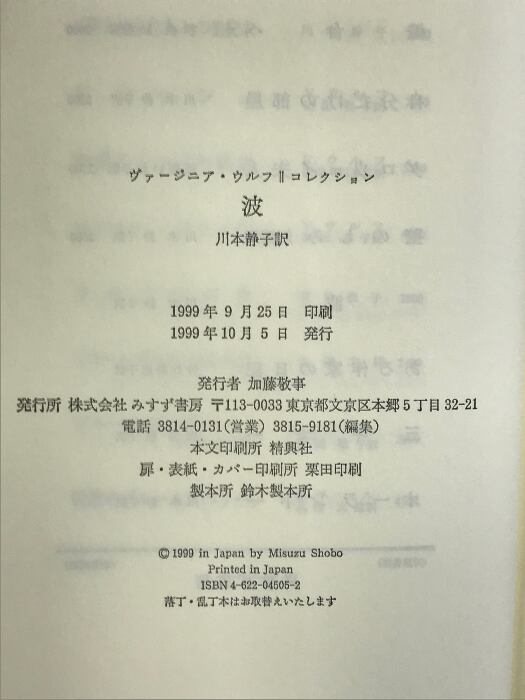 タイトル:波 (ヴァージニア・ウルフコレクション) みすず書房 ヴァージニア ウルフ