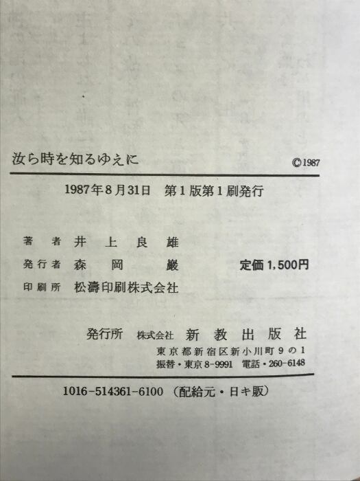 汝ら時を知るゆえに 新教出版社 井上良雄