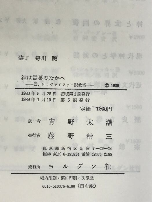 タイトル:神は言葉のなかへ―E.シュヴァイツァー説教集 ヨルダン社 E.シュヴァイツァー