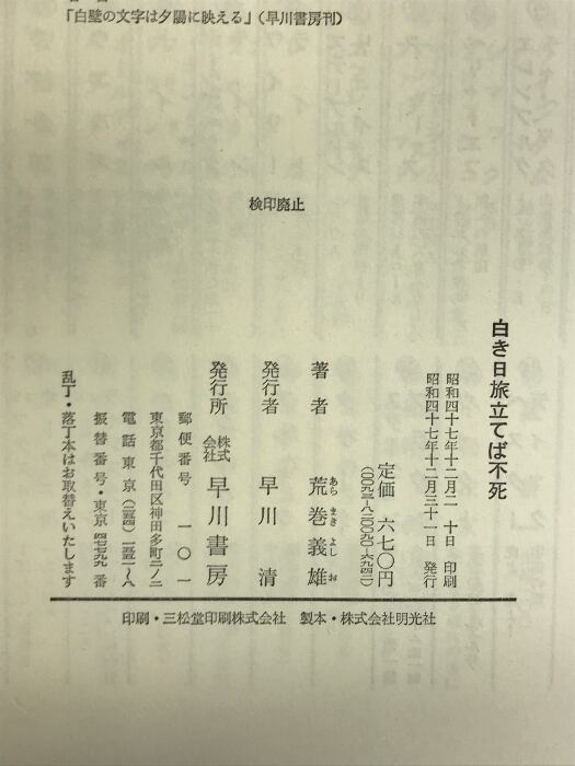 タイトル:白き日旅立てば不死 (日本SFノヴェルズ) 早川書房 荒巻義雄