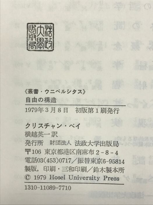 タイトル:自由の構造 (叢書・ウニベルシタス) 法政大学出版局 クリスチャン・ベイ