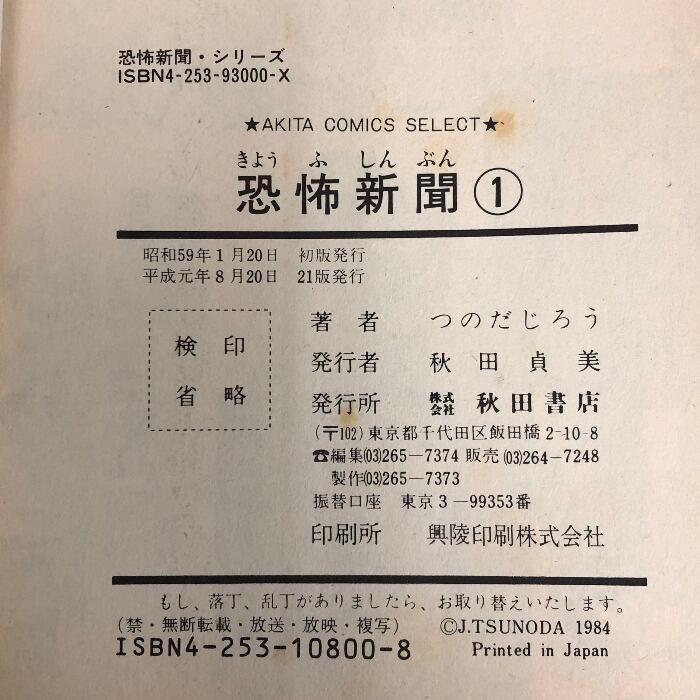 恐怖新聞 全5巻セット 秋田コミックスセレクト 講談社 つのだじろう ACセレクト