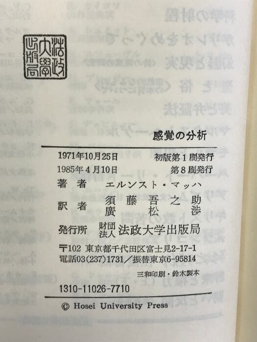 感覚の分析 (叢書・ウニベルシタス) 法政大学出版局 エルンスト・マッハ