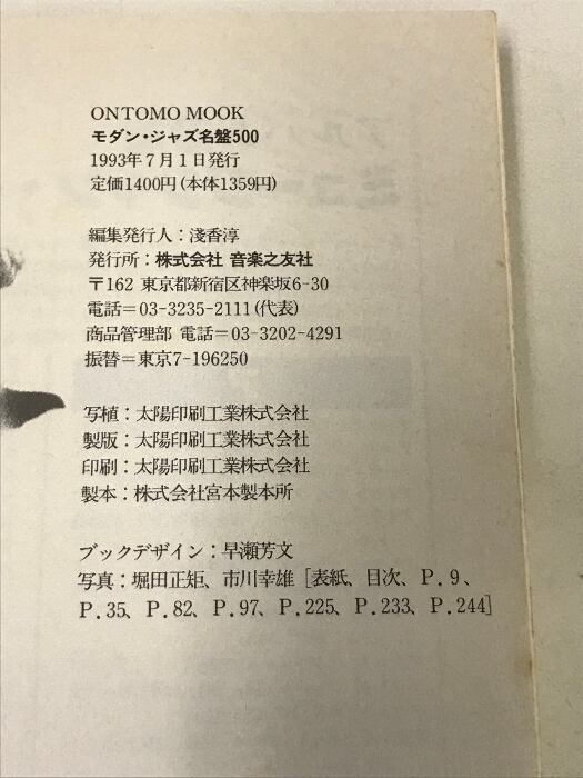 タイトル:モダン・ジャズ名盤500 Modern jazz 決定版 ONTOMO MOOK 音楽之友社
