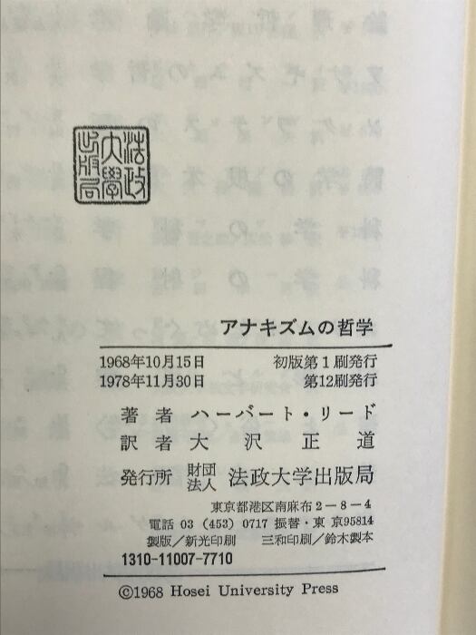 タイトル:アナキズムの哲学 法政大学出版局 H.リード