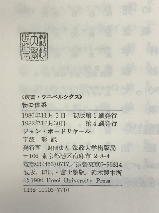 タイトル:物の体系―記号の消費 (叢書・ウニベルシタス) 法政大学出版局 ジャン・ボードリヤール