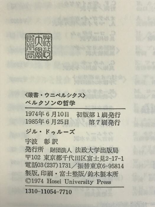 タイトル:ベルクソンの哲学 (叢書・ウニベルシタス) 法政大学出版局 ジル・ドゥルーズ