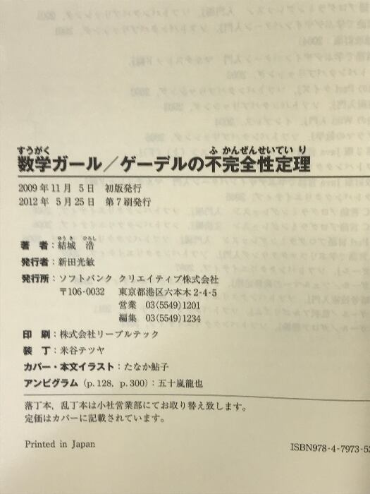 数学ガール/ゲーデルの不完全性定理 (数学ガールシリーズ 3) SBクリエイティブ 結城 浩