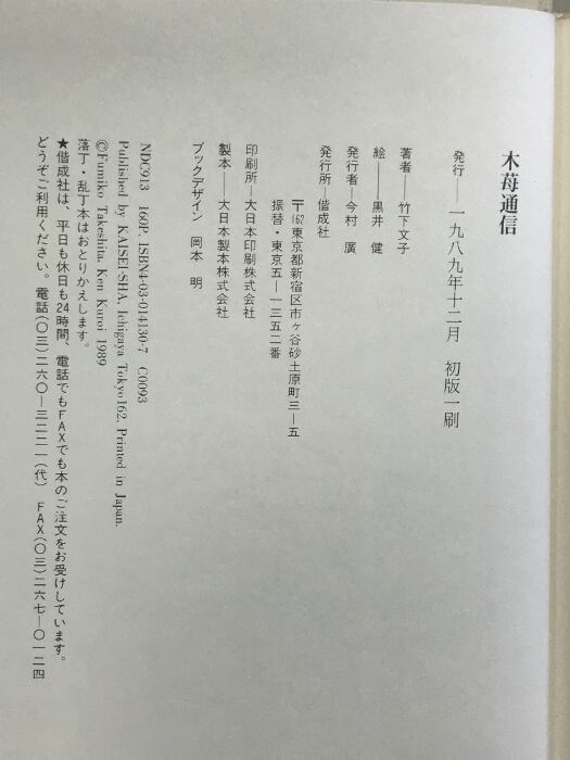 木苺通信 偕成社 竹下 文子